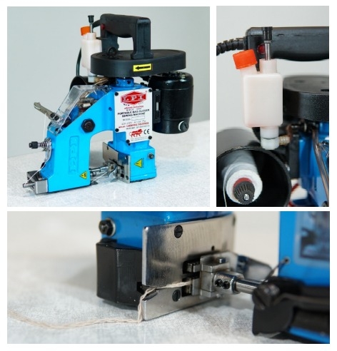 Fechamento de sacarias de papel, plástico, ráfia e até mesmo juta que embalem desde grãos e sementes até produtos químicos.