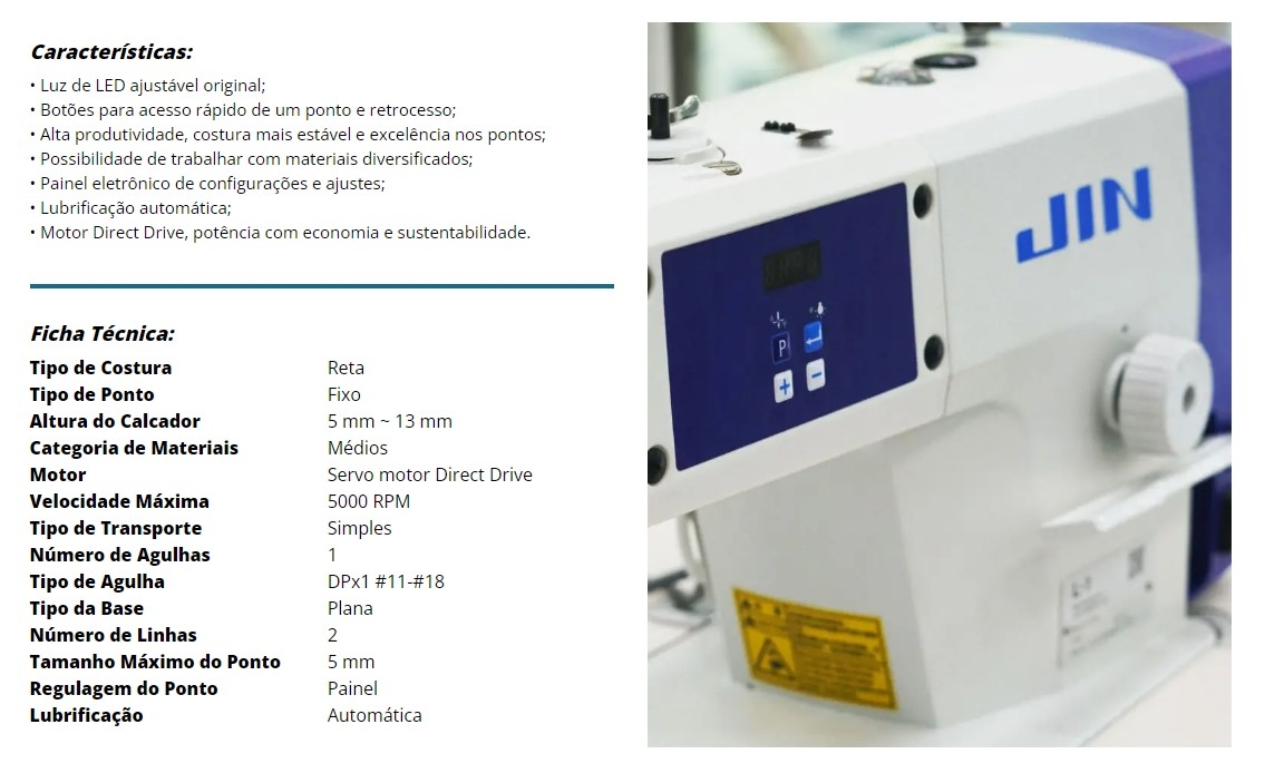 - Mecanismos precisos garantem costuras perfeitas e consistentes, independente do comprimento do ponto ou material trabalhado.