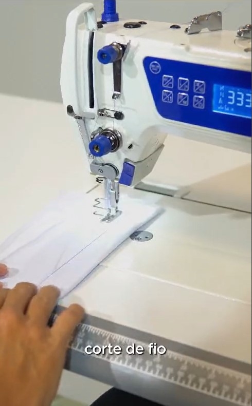 11 - Velocidade programável (a operadora ajusta a velocidade através de teclas no painel de comando) - as máquinas com motores convencionais são fabricadas para trabalhar na média de 5.000 RPM e para mudar a velocidade é necessária a troca da polia e reajuste da correia, o que demanda mais tempo.