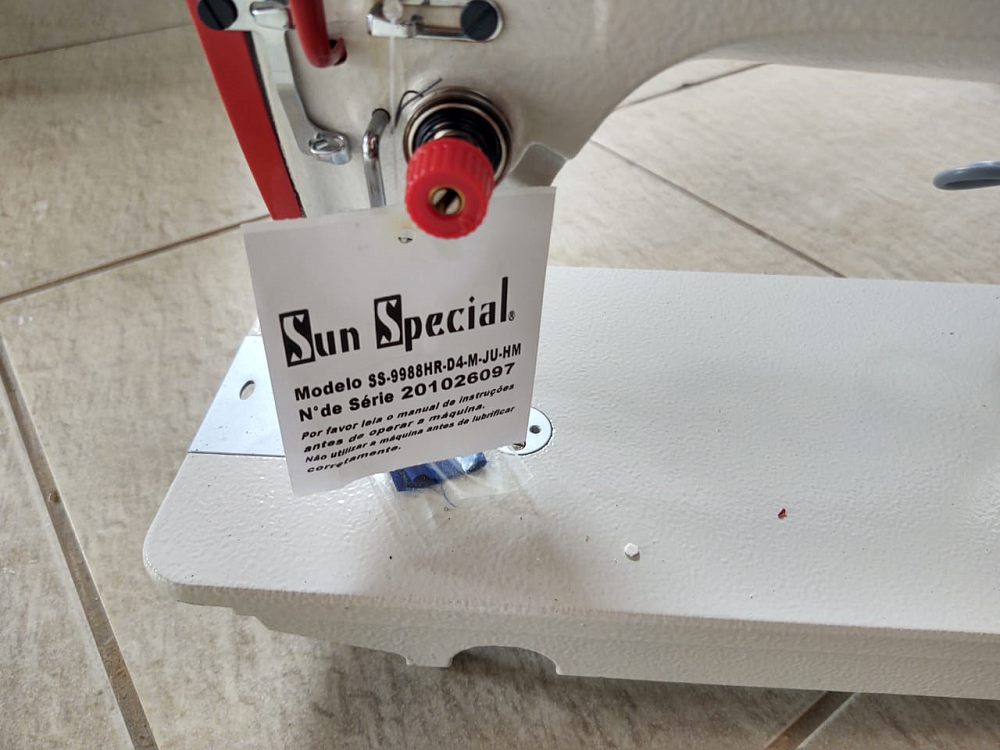 Máquina de Costura Completa com Mesa Fórmica, Pé de Ferro e Motor .
