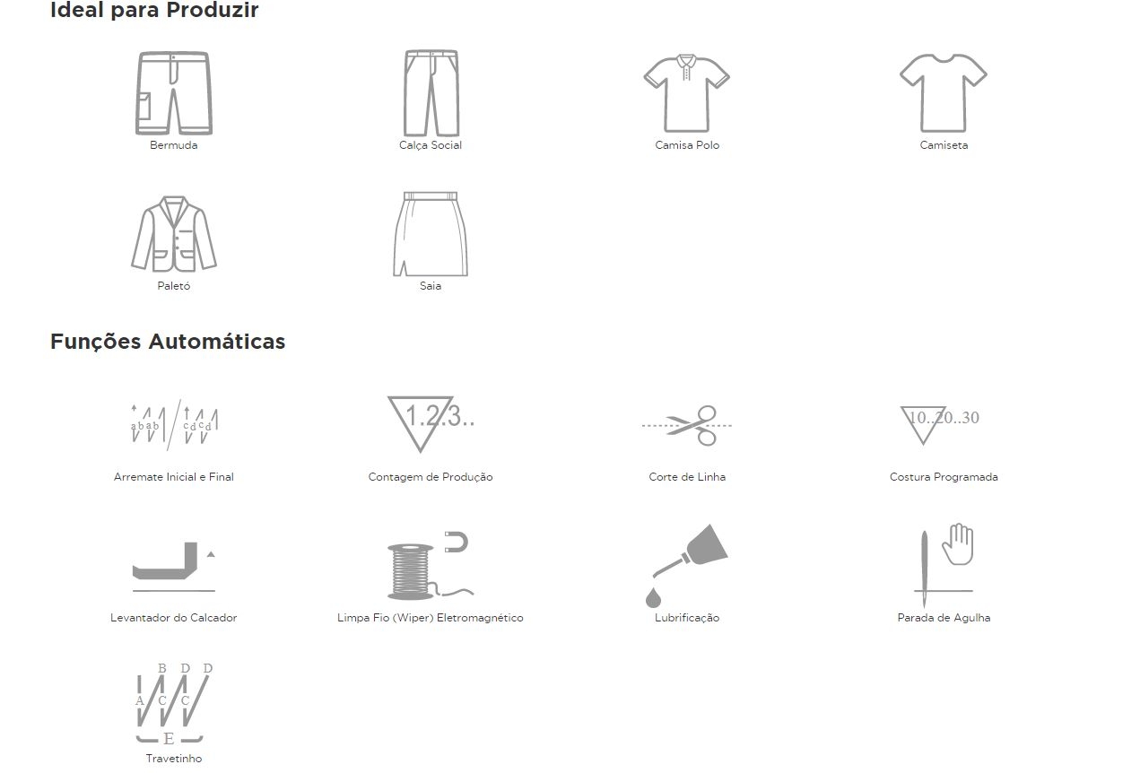 - Segurança e conforto na costura, com baixo nível de vibração e ruídos