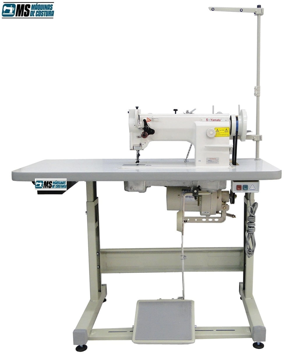 Máquina de Costura Industrial Tipo Reta Transporte Triplo, Marca Yamata, Modelo GC0628, Completa com mesa, estante e motor 110/220v