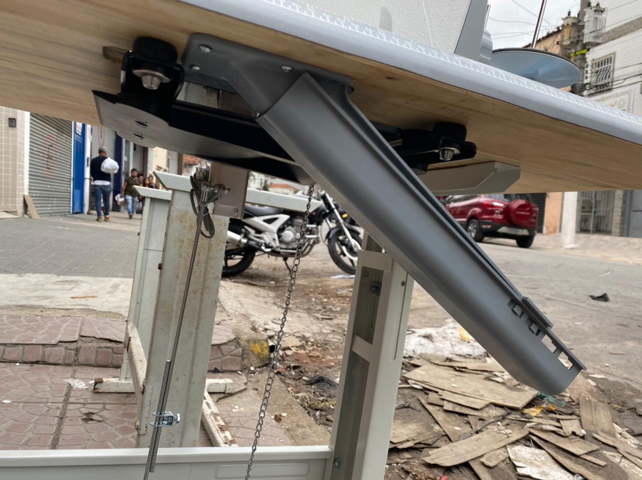- Maquina enviada completa, desmontada com mesa e pés com rodinhas
