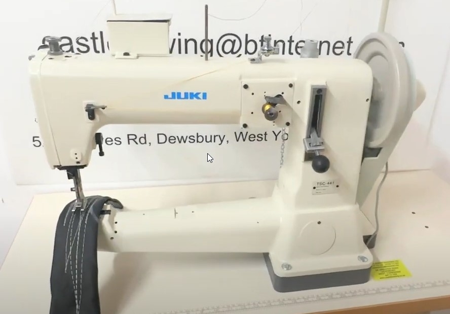 máquina de costura JUKI TSC-441 Japonesa, selaria de alta qualidade, máquina de costura - ombro, orla, barbante com gancho de cano. Triplo deslocamento. Imersão inferior, agulha superior e calcador Adequado para costurar materiais médios e grossos como couro, couro sintético e outros materiais técnicos